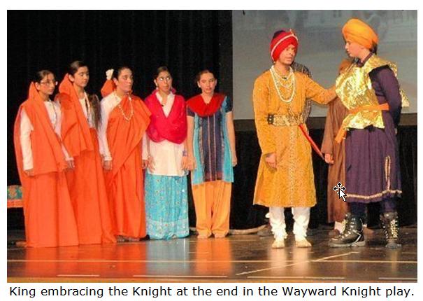 The second play ‘The Wayward Knight' with music and adaptation by Frank Sanchez and Mehr Mansuri, was performed by our youth of ages 10 – 18 yrs. Thisis a story of a knight who is called upon to serve the King and that is the biggest honor he can get. As he sets off on this journey he comes across various situations where many seek his aid and protection. Eventually hereaches the King, but no one in the kingdom recognizes him, and in fact he is called a thief. Finally when he meets the King, while he feels very low and humble because he did not fulfill the King's command, the King recognizes him and honors him to highest degree of Knighthood for his good deeds, honesty and service!
