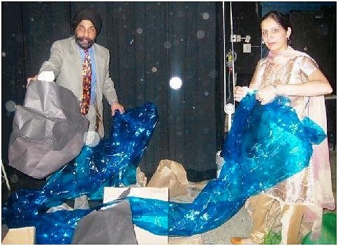 Kawal Singh cleaned up after the play with her husband, RaviSingh. She prepared all the settings and costumes for the actors.