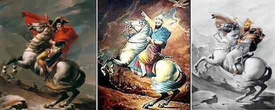 David’s Napoleon Crossing the Alps; Gurbux Singh’s Guru Gobind Singh; A poster based on Gurbux Singh’s painting, with added sword in hand