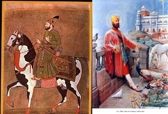 Guru Tegh Bahadur by the Sikh School; Guru Tegh Bahadur by Sobha Singh. Courtesy the Sobha Singh Estate, credited to Sobha Singh, distributed by Sobha Singh Art Gallery