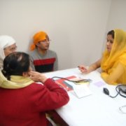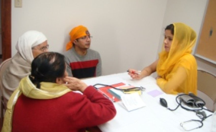 Dr. Damanjeet Kaur Kahlon, Dr Bhupinder Kaur and Veena Katyal carried out blood pressure screening. Dr Parminder Modgil helped with the consultations. Mrs Inder Chandra and Mr Suresh Chandra helped with data collection of sangat members who had the checkups.