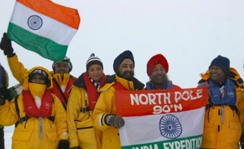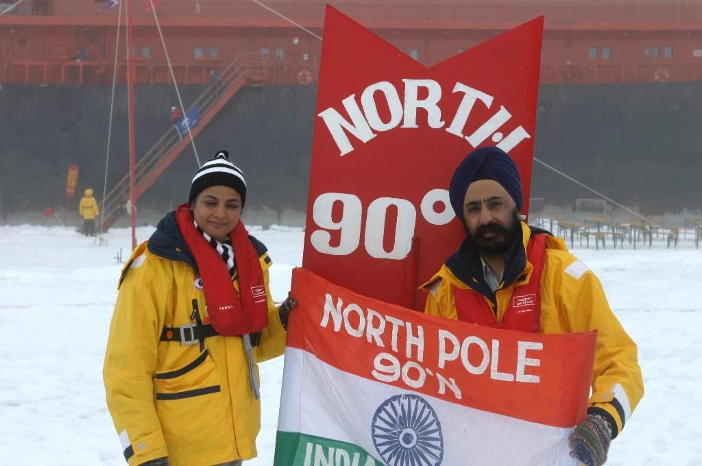 This is first time ever for Sikhs to reach the North Pole. It is also the first for an Indian living in India as earlier only one Indian living in Europe travelled last year to the North Pole. Sardar Gurpreet Singh Anand and Sardarni Gurmeet Kaur Anand are from Delhi and the third Sikh on board, Arvindar Pal Singh Bahal is from Boston and has been living in USA for the last 38 years.