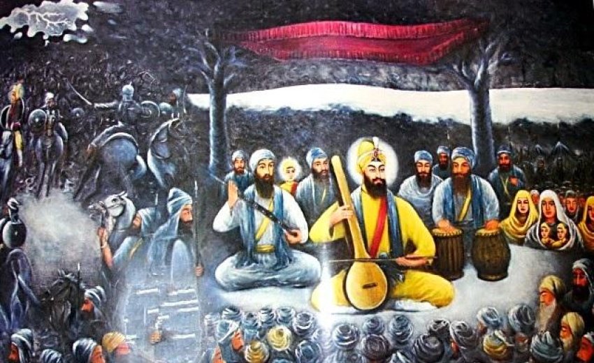 In paintings, the Guru is often depicted with a bow and arrow, sword in hand, falcon on his shoulder, the fierce warrior. But sometimes we find him holding a musical instrument, the devoted saint. He is both. He shows us the courage to face the fires in the world and our own lives with a warrior's heart and saint's eyes.