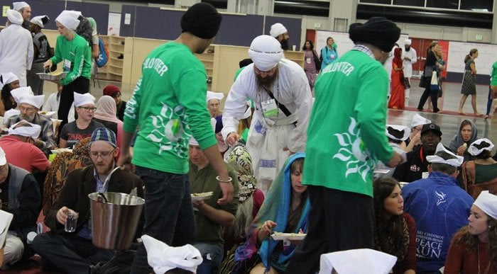 Every day from 11:30 am to 3:30 pm, we Sikhs organized langar for the Parliament. The Guru Nanak Nishkam Sewak Jatha from Birmingham, UK, under the leadership of Bhai Sahib Bhai Mohinder Singh Ji, has led the effort, working with the local Sikhs of Salt Lake City, and other Sikh organizations. Over 80 volunteers from the UK, Canada and the United States form the backbone of this project. Yet hundreds of people from all faith communities also help serve langar every day.