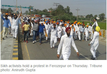 In Ferozepur, hundreds of Sikh activists bearing swords and other weapons have blocked the Ferozepur-Moga highway, and most of the schools and commercial establishments were closed in the city.