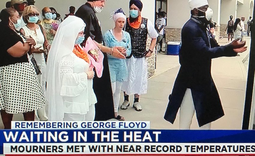More than a dozen men from the Houston Fire Department, donning crisp blue shirts waited in line, chatting with linemates. Members of the Sikh community quietly waited. Texas Gov. Greg Abbott and Houston Mayor Sylvester Turner and other dignitaries joined the throng. “George Floyd did not die in vain,” Abbott said, vowing police reform in Texas.