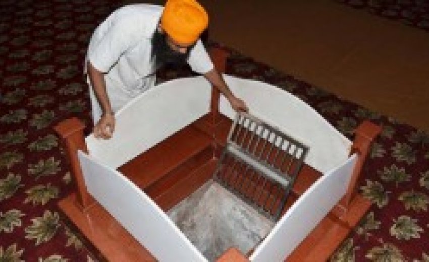 | The well with holy Ganga water at the gurudwara |
