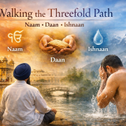 My journey in Sikhi has not been a straight road marked by certainty, but a slow awakening, layer by layer, through remembrance, responsibility, and renewal. The Gurmat path does not demand escape from the world; instead, it insists on immersion within it, transformed by awareness. Over time, I have come to understand that Naam, Daan, and Ishnaan are not three separate practices but a single rhythm of living, a breath that flows inward, outward, and again inward, aligning the soul with the Divine Hukam.