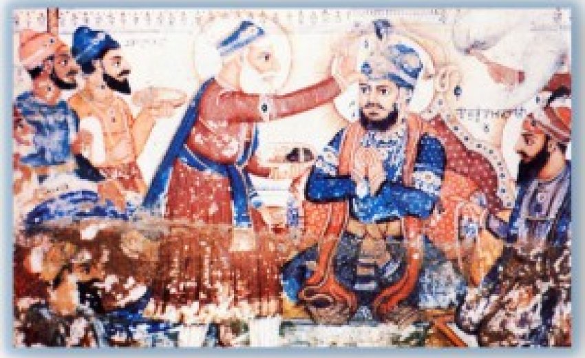 | Guru Ramdas ji bestowing Guruship to Guru Arjan Dev Ji |