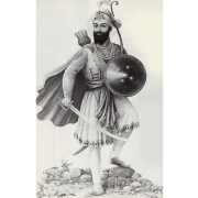 He was in full dress of royal blue and wore a long sword at his waist. As he strode the short distance from the tent to the top of the mound, the sun caught the jewels in the hilt of his sword and it shone magnificently. There was determination in his stance, as he turned to face the sangat.