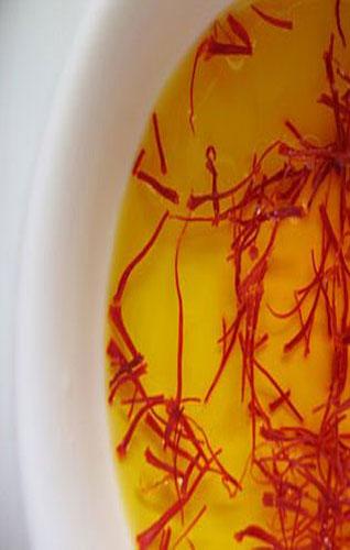 Heat a couple of tablespoons of full fat milk and add some strands of saffron, a pinch of the royal stuff and a couple of less noble ones