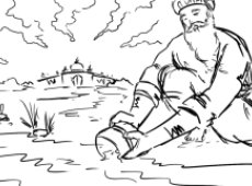 Of course he obeyed. The river wasn’t very far away. He left the fort, went to the river, filled the cup, came back, and brought it to Guru Sahib. Instead of drinking the water Guru ji told him, “Now… go and put the water back in the river.”...He was surprised,
