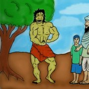 One day the villagers began talking among themselves and they got very excited. Even in the jungle, the father and son could hear the noise in the village as the people got more and more afraid. They said, “Oh no, Adi Momo is coming, Adi Momo is coming!” The son asked the father, “Adi Momo? What’s an Adi Momo?” The father patiently explained, “My son, Adi Momo is a man. Everyone thinks that Adi Momo is very mean and violent. Sometimes he comes around and acts really angry, he breaks things and scares people.”