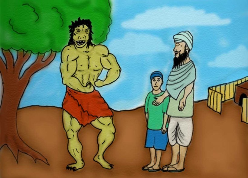 Adi Momo was coming closer and closer to the village. He looked more like a beast than a man. His skin was thick and dark, he had scraggly, dirty hair in his face. He snarled and grunted as he walked. When Adi Momo came right to where the father and son were they both got a little scared.