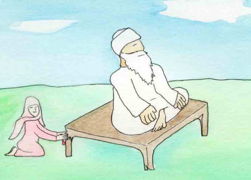 Finally Guru Amar Das came out of his meditation. He opened his eyes slowly, he saw his daughter. He noticed she didn’t look comfortable and asked her, “Hey Bhani, what’s going on?” The pain caused tears to fall from her eyes, she said, “Nothing Pita ji.” When the Guru saw what had happened he immediately stood up and quickly removed her hand. He sat with her and pulled the splinters out.
