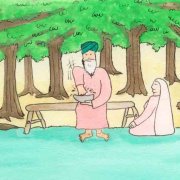 A caravan was prepared. She made sure her servants prepared the finest food, so she could give it to Baba Budha as an offering. She put on her most beautiful dress. She rode in a carriage and a whole group of her royal servants and attendants came on horses. They were a most impressive procession! The grand procession made its way to the village outside of Amritsar, where Baba Budha lived. When she got there, she asked a villager, “Where is Baba Budha, I have come to give him an offering.” The villager said, “He said he knows why you have come. He also said he doesn’t want to talk to you and he wants you to leave him alone and go away right now.”