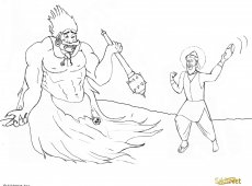 There is balance in the universe, that is why there are consequences for every action people make. This balance is what makes harmony. Harmony is why this universe has beauty. There are consequences even for Death's Angels. So Yam Raj decided to teach this one a lesson. He told the messenger, "I want to to take this person's life. His name is Kabir. Go get him." Kabir was a Bhagat, a man who meditated on God all the time. He chanted, "Ram, Ram, Ram, I'm merged with you Lord, Ram, Ram, I know Death's secret, Ram, Ram..." The Messenger went to fetch Kabir. In his mind he thought, "This puny mortal thinks he knows Death's secrets, hahaha. I'll teach him a lesson to make him regret his words. These mortals are all the same". And he laughed.