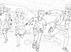 He realized that it was an earthquake, "Oh no! We must get out of the house immediately!" He gathered his kids, the whole family tried to make their way through the chaos. The floors began to crack, everything fell out of the cupboards, the windows started to break. Even the walls started to fall down. "Ohhhh nooooooooo!!!!" They cried out.
