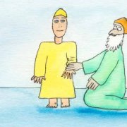 The doctor was surprised when he heard the deep wisdom that Nanak was saying and saw that he had a pure and deep love for God. The doctor was pleased and charmed to meet with such a pure and wise child. Nanak’s parents asked, “Is he OK? Is it fever? What’s wrong with him?” The doctor said “He’s not sick, he’s actually more healthy than the rest of us. Stop worrying about him, he belongs to God.” Well his parents still didn’t quite understand their own child. That’s how it is, you know. No one can know the inner feelings of a saint.