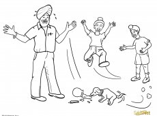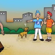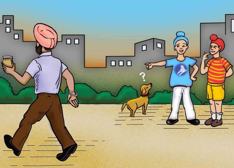 His friend said, "look... no threats. Just wait. Let's try my idea and see if it works." And they watched the man buy the yogurt and start to walk away,  the two boys ran up behind him and began walking alongside of him in rhythm saying, "left right, left right, left right, left right, left right." Soon, all three were marching down the street at a very fast pace, all in step, saying, "left right, left right, left right." After a few minutes the friend suddenly shouted at the top of his lungs, "HALT!" and you know, that army man stopped so suddenly that he dropped that pot of yogurt right on the road. And what else could the dog want? Happily he ran over and ate all the yogurt which had spilled onto the street.