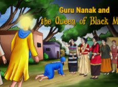 Guru Nanak traveled all over India to spread the word of God, and he walked everywhere on foot. His companions Bala and Mardana always traveled with him. Once they were in a remote part of India called Kamrup where the people were famous for their devotion to black magic. When Guru Nanak reached the outskirts of the city he sat down under a tree and began meditating. While Bala stayed with him Mardana went ahead into the city to find food and drink.