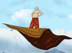 Guru Nanak, together with Mardana and Bala, his two friends who always served him, traveled together to the country of Kashmir. They came to the city of Sri Nagar. There the people knew who he was because of his grace and his light. The people were very happy and blessed to sit with him and learn from him. In that city there was also a Pundit named Brahm Das. He was very learned and through his devotion to the goddess he had gained yogic powers. When he heard that a great Guru had come to town he thought, "I don't think I will be that impressed with this new-comer. It is I who has great knowledge and supernatural powers. I will show him my skill. Sitting on this carpet I will fly over to where he is and there is no doubt that he will be totally impressed when I arrive."