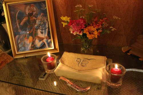 This is the altar and here is where you recite your prayers everyday, conduct your meditation and naam jap. This altar is your ashram where you sit and contemplate or speak to God whenever you feel you have something to share with Him. You can sit quietly before this altar and offload all your worldly worries or problems and heartaches to the Almighty One because, you know in your heart that He is listening to every single word you are saying and every single thought that is arising in your mind. This is the place where you open up to Him without any barriers. This is your quiet room and this is where you take yourself when you need solace, peace and quiet. I have seen this kind of altar in majority of Sikh and Hindu homes and have been very impressed. My Grandmother who was a Sikh always had a jyoti on in their home in India. I remember as a child the spiritual impact it had on myself and on others that lived in that house.