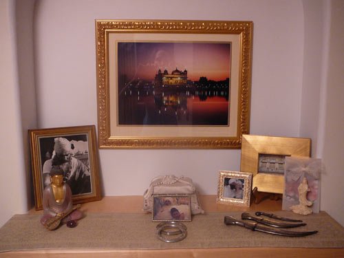 When we don't have a Gurdwara in our home it is great suggestion to set a place in the home that creates the feeling, or the remembrance of the sacred to assist in our prayers, our Simran. Clean and beautiful, simple or elaborate, this is a place where we come to shed the cares and worries of the day, and to give the contents of our minds and hearts to the remembrance of our Creator, setting ourselves before we begin our busy day, or, at its conclusion (or anytime in between).