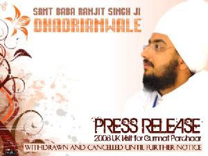 News: Sant Dhadrianwale 2008 Uk Visit Withdrawn And Cancelled. UK-based organisers provided full details of the recent changes to Sant Baba Ranjit Singh Dhadrianwale's UK Gurmat Parchaar Visit which was confirmed to be withdrawn and cancelled late last week.