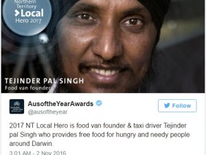 After a gruelling 12-hour shift driving a taxi, Tejinder spends five hours cooking up a storm in his kitchen, preparing 80 kilograms of vegetarian curry and rice, which he then serves as a free lunch.