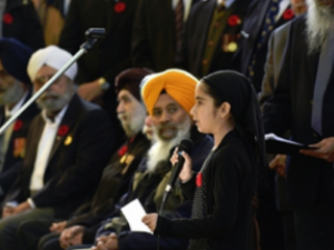 More than 200 members of the Canadian Armed Forces gathered at a Sikh gurdwara in Scarborough on Sunday, in what is believed to be the first-ever regimental Remembrance Day service to take place at a Sikh place of worship.