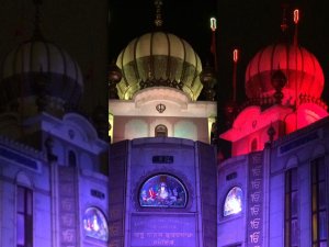 Smethwick, Birmingham (UK) - One of the largest Sikh Gurdwara's in Europe, the Guru Nanak Gurdwara in Smethwick has lit up in the colours of the Belgian flag in solidarity with Brussels...