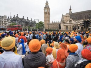 Hundreds of Sikhs protested outside the British parliament on Wednesday, calling for the release of what they said were Sikh political prisoners in India. Demonstrators also raised the case of octogenarian Bapu Surat Singh Khalsa...