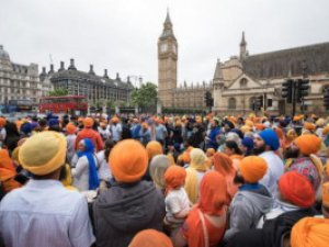 Hundreds of Sikhs protested outside the British parliament on Wednesday, calling for the release of what they said were Sikh political prisoners in India.