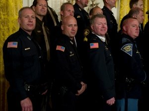 The eight Oak Creek police officers who responded to the shooting at the Sikh Temple of Wisconsin in August have received a national law enforcement award and were honored at the White House Saturday morning by President Barack Obama.
