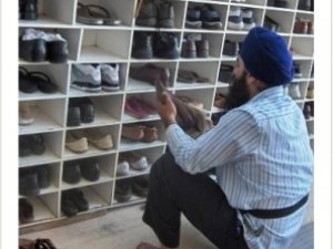 Carrying with them boxes of shoe polish and brushes, members of Nankana Sahib Sikh Yatree Jatha are all ready to visit gurdwaras in Pakistan. This is one of its kind jatha that takes positions in Pakistan gurdwaras on various Sikh religious occasions, and had been doing the free shoe keeping and shining service for nearly 11 years.