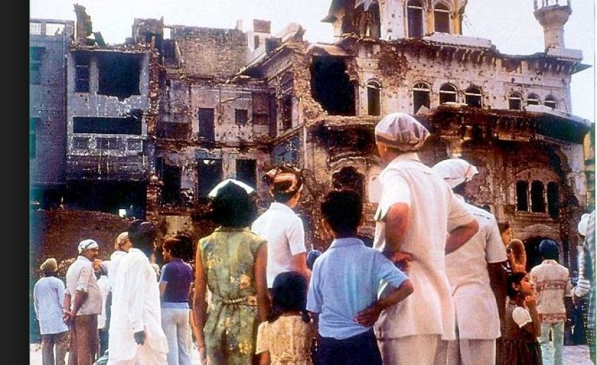 Now the soldiers escorting me were yelling "He is the head priest" but no one was listening to anyone. I was shot at once again near the Lachi Baer Gurdwara. This bullet missed and hit the floor near me. Near Lachi Baer Gurdwara, Sri Akal Takhat's courtyard was filled with dead bodies. Soldiers were everywhere. The Darshani Deodhi (anteroom) Janda Bunga (New anteroom) - everywhere soldiers were positioned with entrenched machine guns and LMGs. The historical Lachi Baer tree was badly brutalized. The nearby room for Palki Sahib was badly littered with scattered rumalas. With a deeply saddened heart and great difficulty, I reach thus far in my story.