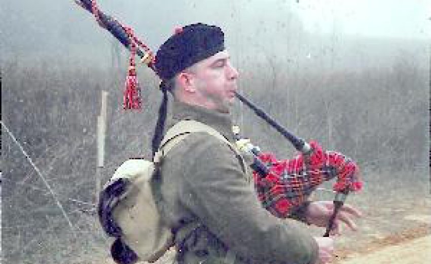 My name is Mick Stewart and I am the Drum-Major of 2nd Battalion King's Own Scottish Borderers (KOSB) Pipe Band (reenacted) in Houston, Texas. That's me in the photo.