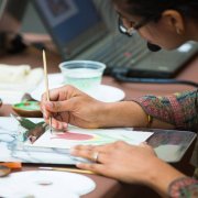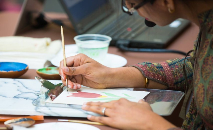 A counseling psychologist at English teacher by day, Jeevna is a painter in her free time. You can see her work on her Instagram where her pug dog, named Patka, often makes an appearance with her art.