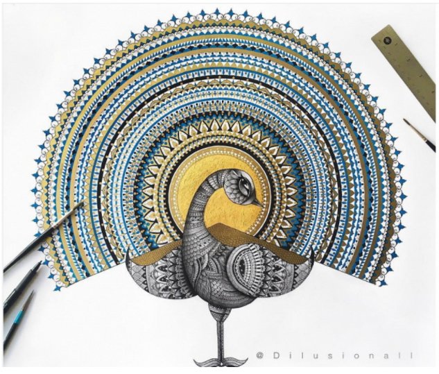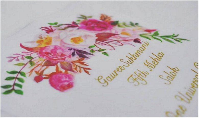 “Dilmeet Kaur is a Scottish Sikh artist who uses inspiration from Gurbaani and Sikh heritage to create her artwork. The detail of pattern designs often seen in the work by Dilmeet Kaur originates from Sikh architecture such as Siri Harmandir Sahib. This style of artwork is engraved on the walls of many Gurdwaras and is at the heart of the works produced by Dilmeet Kaur. Many artwork pieces also contain the writings of Sikh gurus through a calligraphic style and decorated with floral paintings. These writings are translations in english of Gurbaani to allow both Sikh and non Sikhs to connect to the essence of the Sikh teachings.Through this artwork, Dilmeet Kaur not only hopes to create beautiful pieces of art, but to also share the understanding of our Gurus words,” from Dilmeet’s website. See more of her art on her website, her Instagram, and her Facebook page.