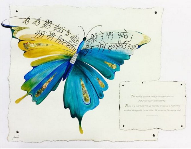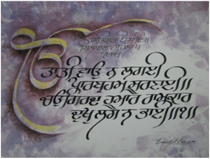 “Kamaljeet has a natural air for English and Hindi calligraphy but i is Punjabi gurbani calligraphy in which she has excelled. Guru Granth sahib is her inspiration and strength. No wonder, working with the holy text, she feels is like worship for her,” from her website.