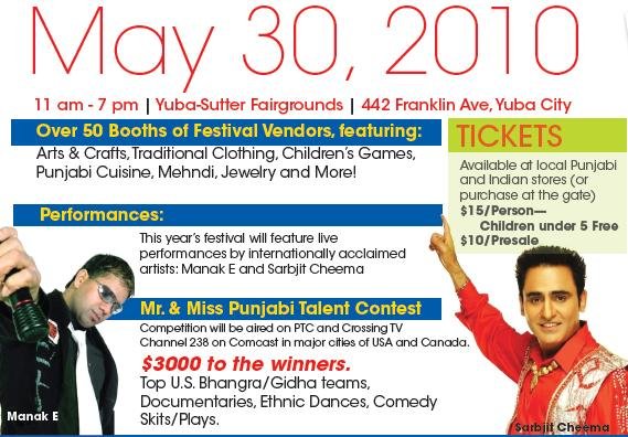 We hope you will join us at the festival, where we'll highlight the beautiful heritage of the Punjabis through music, dance and food. Come and experience our colorful clothing, learn about our history through our historical displays, taste our exotic cuisine and enjoy some of our most popular Punjabi recording artists on stage.