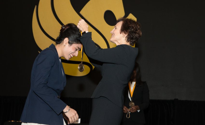 Jeslin Kaur Kera, the first Indian-born Sikh, to win the Order of Pegasus, the highest award a student can attain at University of Central Florida.