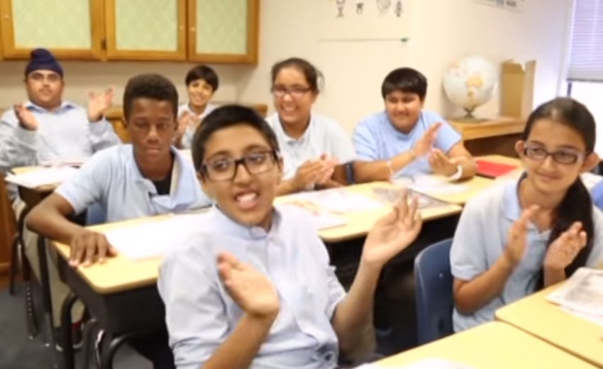 Principal Gibson is proud to serve at the school, "What is special about our school is that our students are wonderful. It is the first public charter school in the United States that has Punjabi as an enrichment foreign language. All of our students get 45 minutes of language, Punjabi. They learn to be very literate in Punjabi, they speak and they read..."