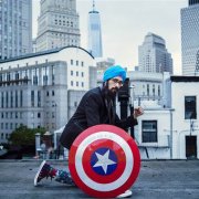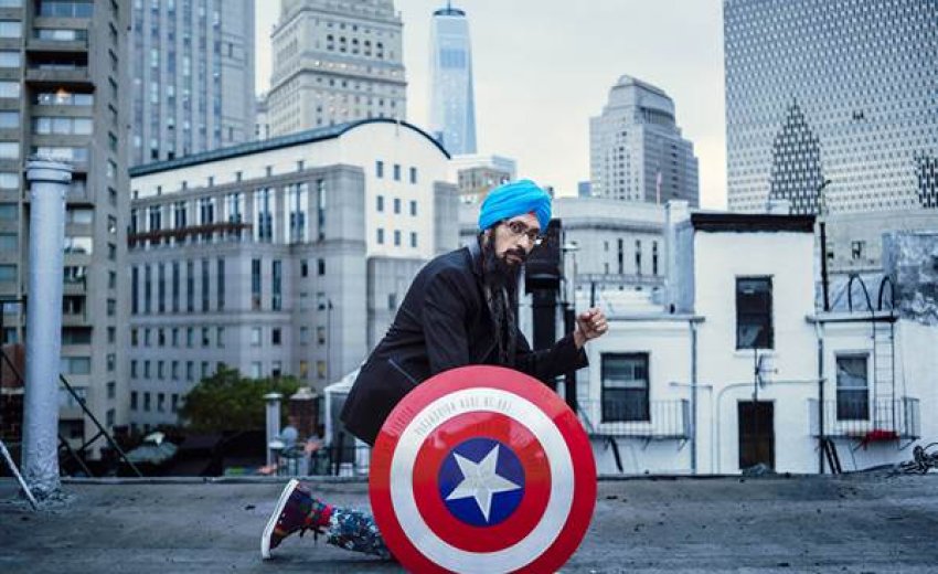 | "Bit by mosquito / plasmodium made me hot / and now sexy too?" - "Sikh Captain America" Vishavjit Singh Photo by An Rong Xu |