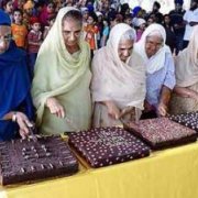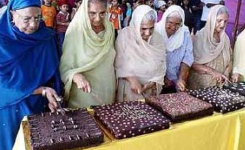 Seniors row: Oldest mum at the event Naranjan (right) cutting cakes