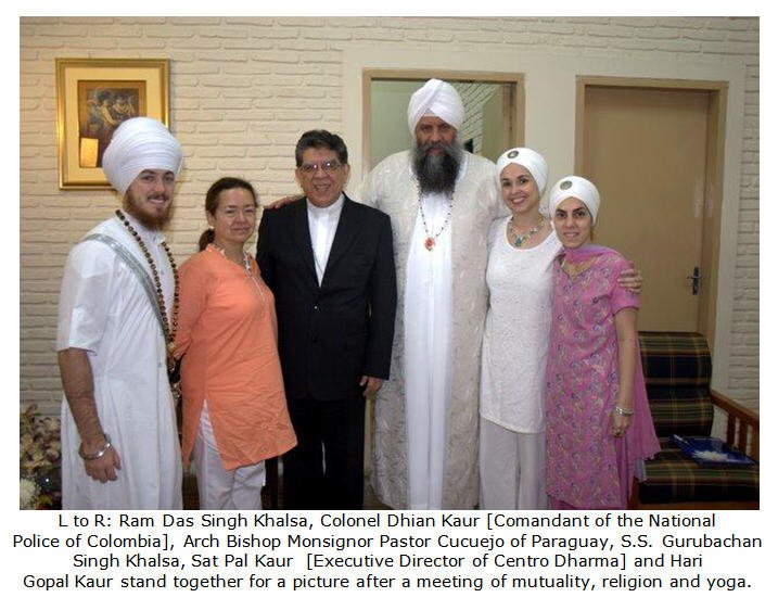 The capital of Asuncion is located in the south of the country on the Argentine border. The people are smiling, sweet and beautiful. Their manners, deportment and language are kind, royal and graceful. It is here in Asuncion, Paraguay that we have the center for all of our projects in South America. El Camino Real [The Royal Path] and Centro Dharma as we are known is the office of Sikh Dharma IberoAmerica. Sat Pal Kaur Fernandez, Executive Director, coordinates all of our efforts throughout South America. It is through her great dedication and devotion that the teachings of Yogi Bhajan and Shabad Guru have expanded so much throughout Paraguay as well.On the first day we were received by the Arch Bishop of Paraguay, Monsignor Pastor Cuquejo. The Arch Bishop is the highest ranking official of the Catholic Church in Paraguay. His knowledge of the human spirit and spiritual life and its challenges was obvious. It was a very beautiful meeting.