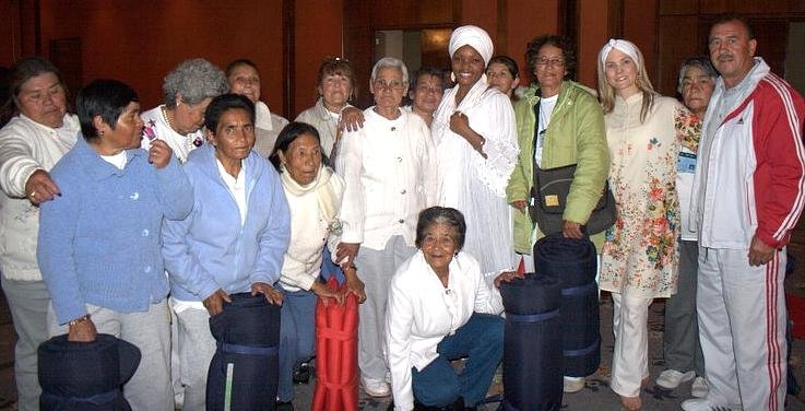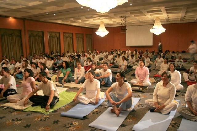 A meditation class was held for more than 200 Colombian Police and their families because of the great stress that is also placed on a policemen’s family. Amritpal Kaur of Austin Texas (who also accompanied us on this tour 5th from right) and Xyomara (a national television personality and Kundalini Yoga teacher - 3rd from right) with part of the group that attended the class held at the National Police Club.