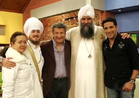 (L to R) Colonel Dhian Kaur of Bogota, Ram Das Singh Khalsa and S.S. Gurubachan Singh Khalsa with the hosts of “Dia a Dia” a morning talk TV show broadcast nationally in Colombia.