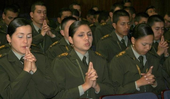 The first class in Bogota was with the National Police of Colombia where their families also participated